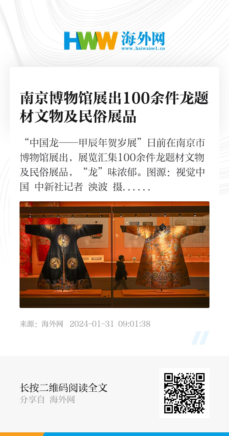 32712042,.南京博物馆展出100余件龙题材文物及民俗展品,.2024-01-31 09:38:38,.204428,.张青津、夏丽娟