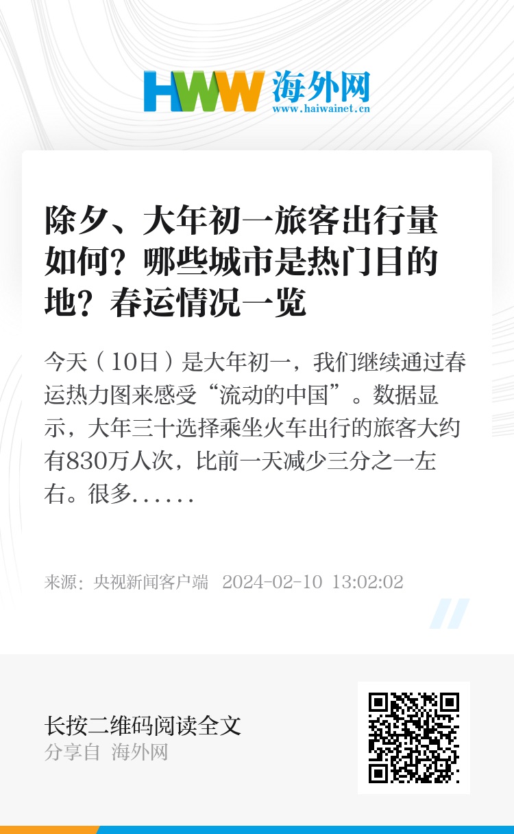 从这些热门线路,我们也感受到了旅游城市的热度。此外,从热门线路中我们也看到,长三角和粤港澳大湾区依然是人员流动热度较高的区域。(总台央视记者 李斌 郭茜 孙茜 董怀文 张明珠)