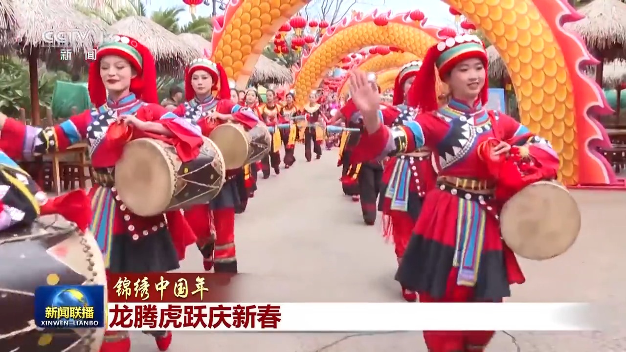 龙腾盛世,锣鼓喧天。在安徽颍上,在浙江长兴,舞龙表演队沿街巡游,为百姓送去新春祝福。在江苏宿迁,充满年味的民俗表演将新春的氛围拉满。在云南昆明,彝族、哈尼族、瑶族、傣族等不同民族的特色鼓舞表演,场面热烈奔放;今天也是藏历新年的大年初一,在西藏日喀则、山南等地,人们身着节日盛装,品美食、做游戏、唱歌跳舞,热热闹闹过大年。