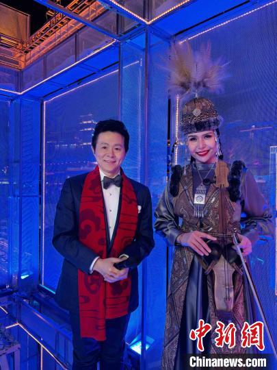图为阿尔生·巴哈提(右)参加2024年总台春晚。 受访者供图