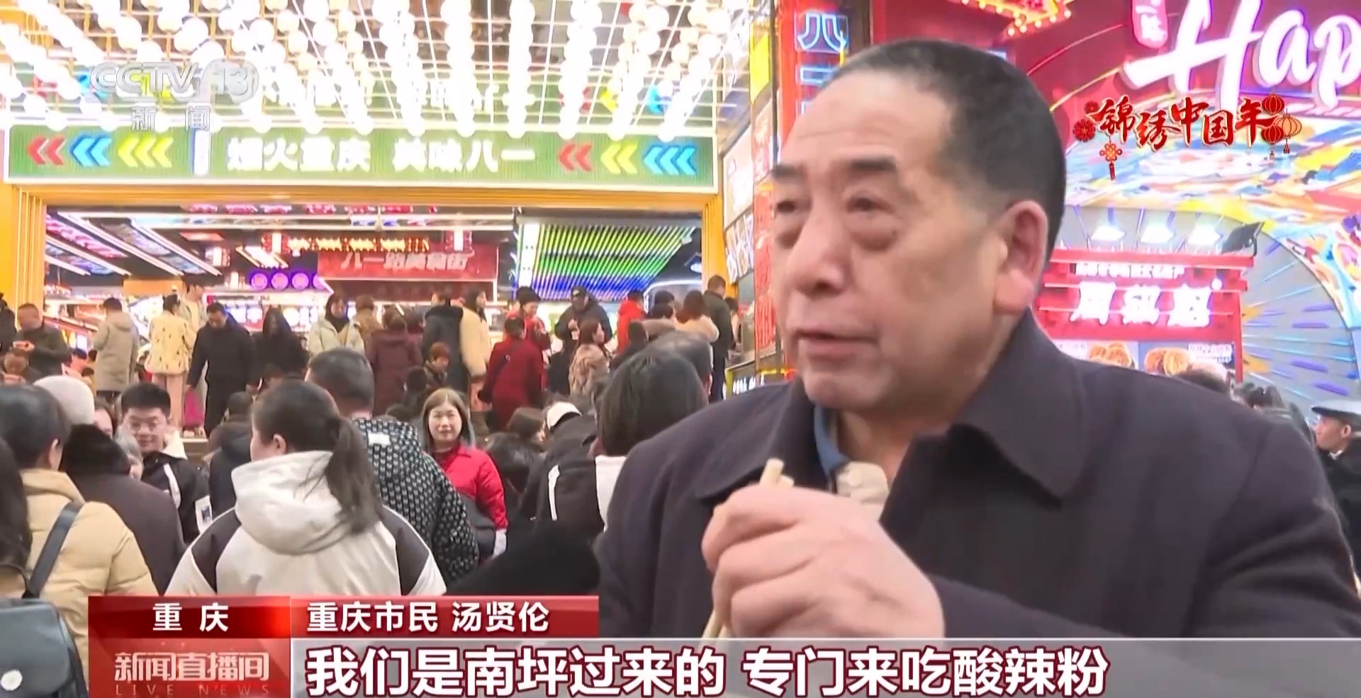 重庆市民 汤贤伦:我们是南坪过来的,专门来吃酸辣粉。我们很久没来吃过了,我都七十几岁的人了,排很久的队才买到。