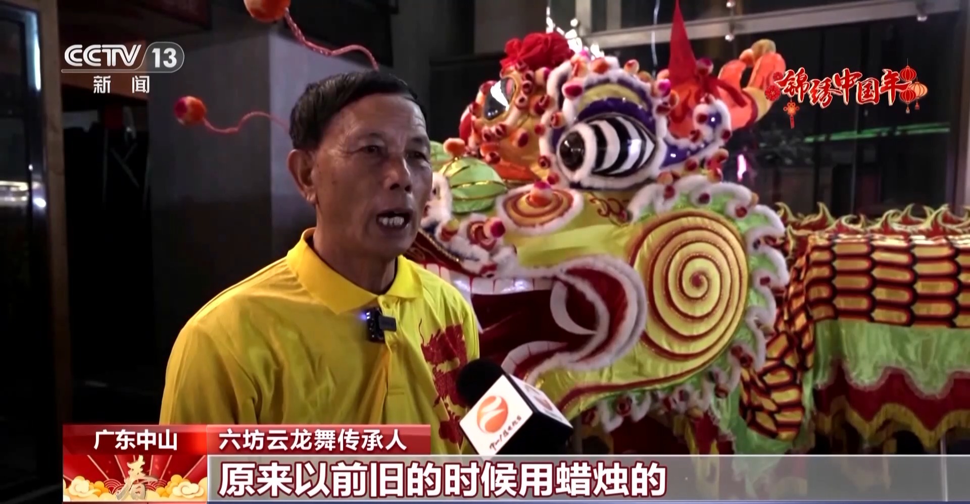 六坊云龙舞传承人:以前用蜡烛的,现在转变到跟我们古镇灯饰的灯配合起来,所以舞起来就栩栩如生。