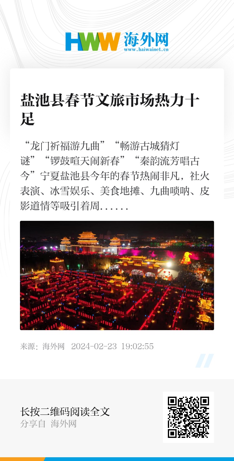 将传统特色年俗活动做成吸引游客的老重点。盐池县以传统特色年俗文化为切入口,结合“在宁夏,非遗过大年”文旅系列活动,融入腊八、小年、除夕、元宵、正月二十三等习俗和盐池年俗文化,策划开展了传统民俗文化系列活动、春晚系列文艺活动、年货系列促消费活动以及灯火秀活动等4个板块20余项活动,游九曲、赏花灯、看社火、皮影戏、听道情、猜灯谜等一系列多样非遗活动“年味”“盐味”十足。丰富多彩的活动自腊八开始到正月二十三收官,完美覆盖了春节假期,赢得了群众一致好评,带动当地旅游消费迎来了龙年“开门红”。