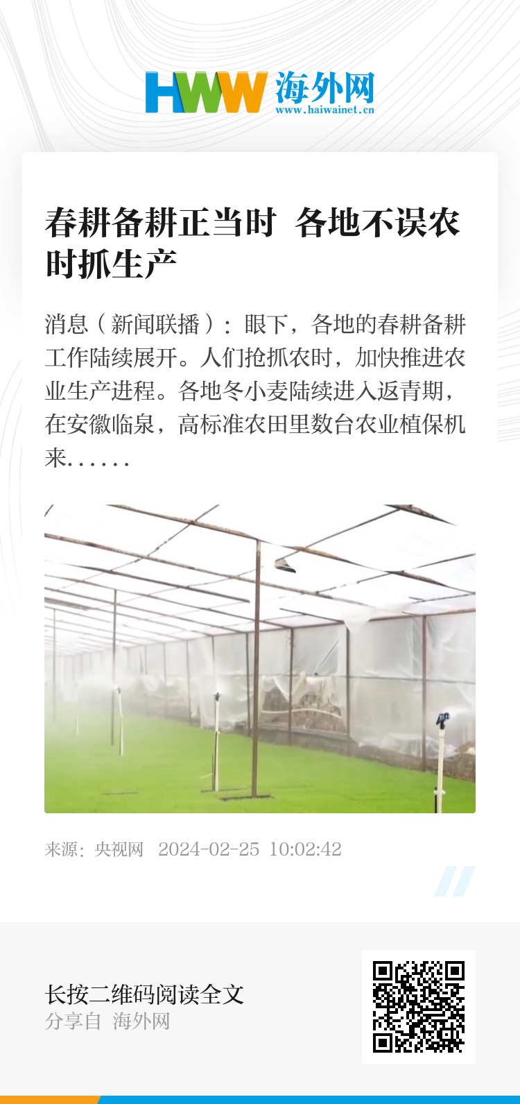 央视网消息(新闻联播):眼下,各地的春耕备耕工作陆续展开。人们抢抓农时,加快推进农业生产进程。
