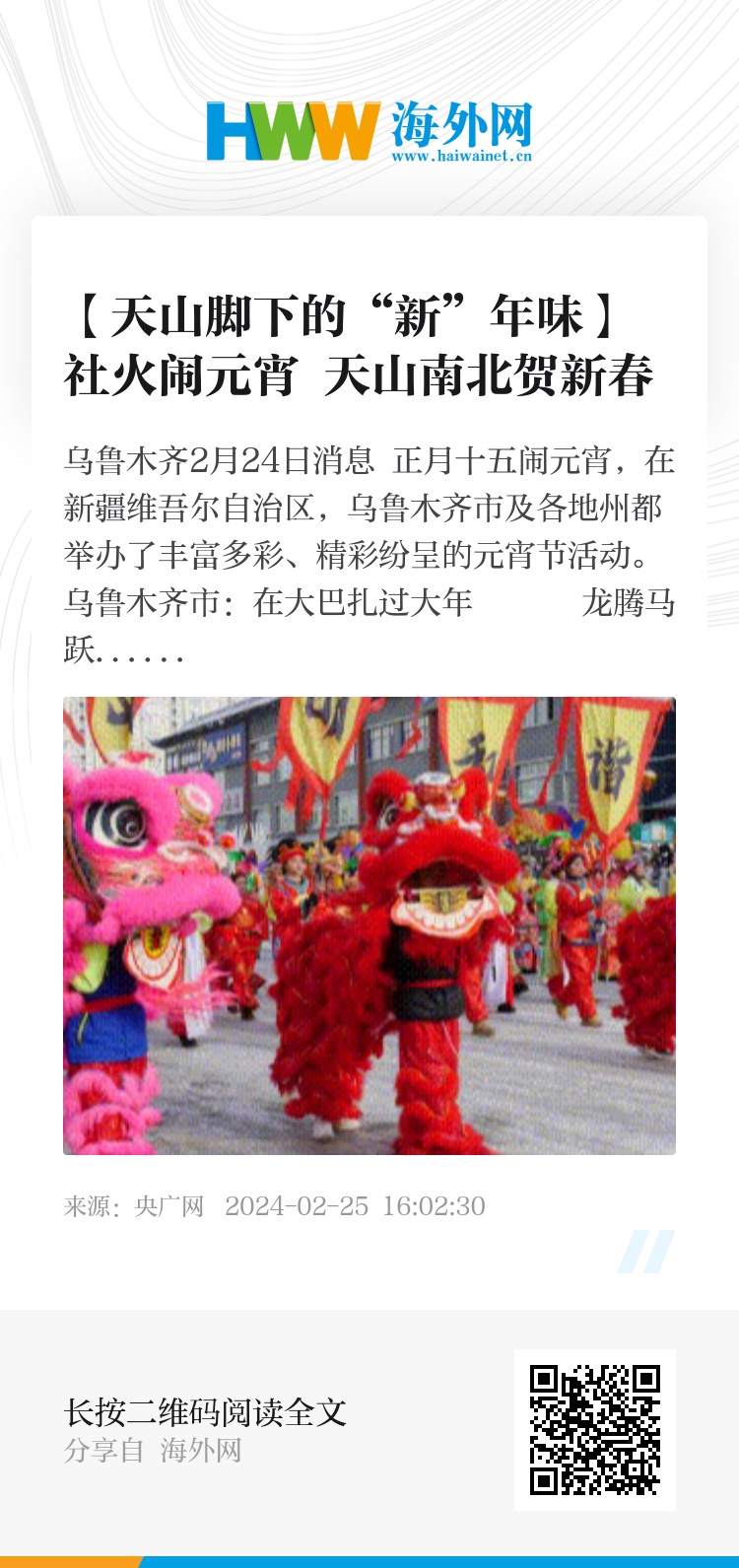 央广网乌鲁木齐2月24日消息 正月十五闹元宵,在新疆维吾尔自治区,乌鲁木齐市及各地州都举办了丰富多彩、精彩纷呈的元宵节活动。