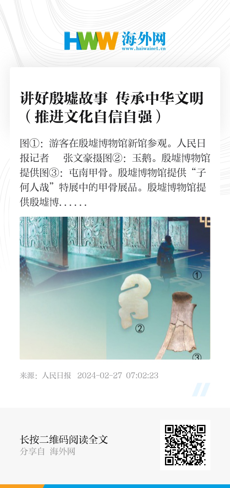 图①:游客在殷墟博物馆新馆参观。