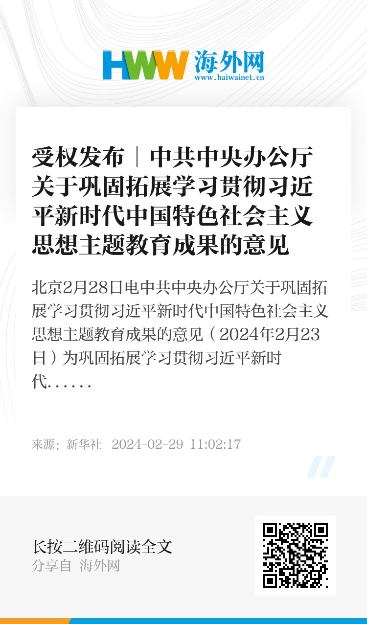 中共中央办公厅关于巩固拓展学习贯彻习近平新时代中国特色社会主义思想主题教育成果的意见