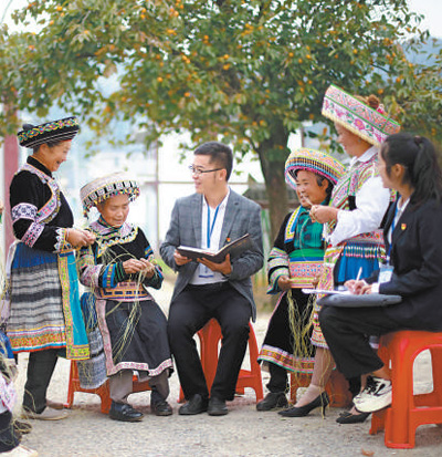 2023年10月24日,贵州省黔西市协和镇工作人员利用“民生议事会”形式,收集群众对合作医疗的意见和建议。