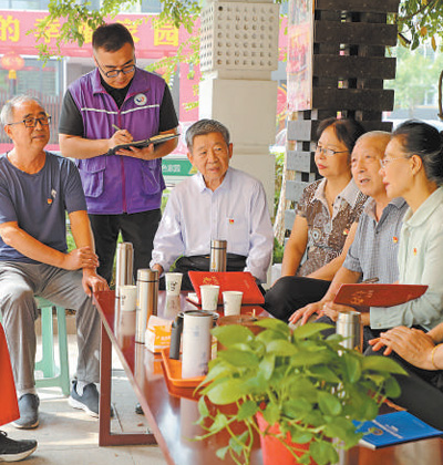 2023年9月6日,山东省东营市东营区黄河路街道玉景社区“书记茶摊”活动组织老党员、志愿者等,共同商讨改进物业工作。