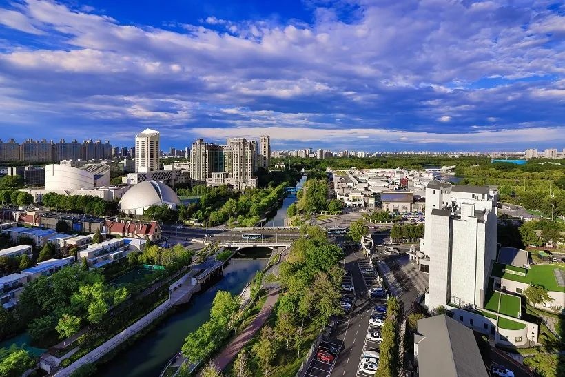 水因城而灵动,城因水而秀美。朝阳区结合公园城市建设,持续推进滨水空间优美水景观建设,提升蓝绿空间的交织交融。通过连通主要河道两岸的绿道,推动滨水步道、通航河道与绿地空间的相连相融,构建以绿为基、蓝绿交织、无界融合的空间格局,塑造公园城市的优美形态。
