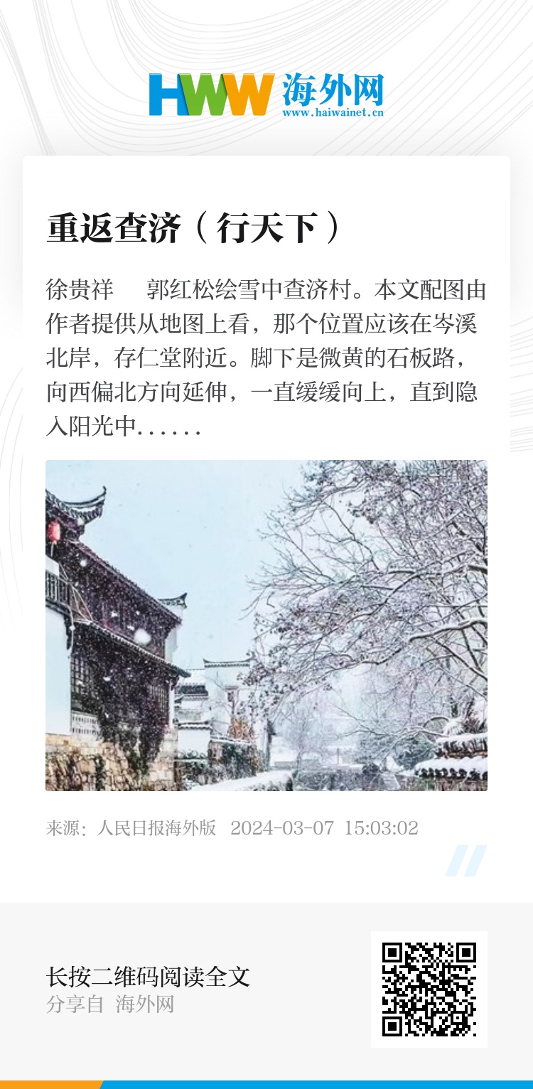 站在皖南古村落查济的十字路口,我对当地文友说,我们为什么钟情古村落,因为古村落有距离我们最近的生命记忆,有我们回访历史所能抵达的最远驿站。