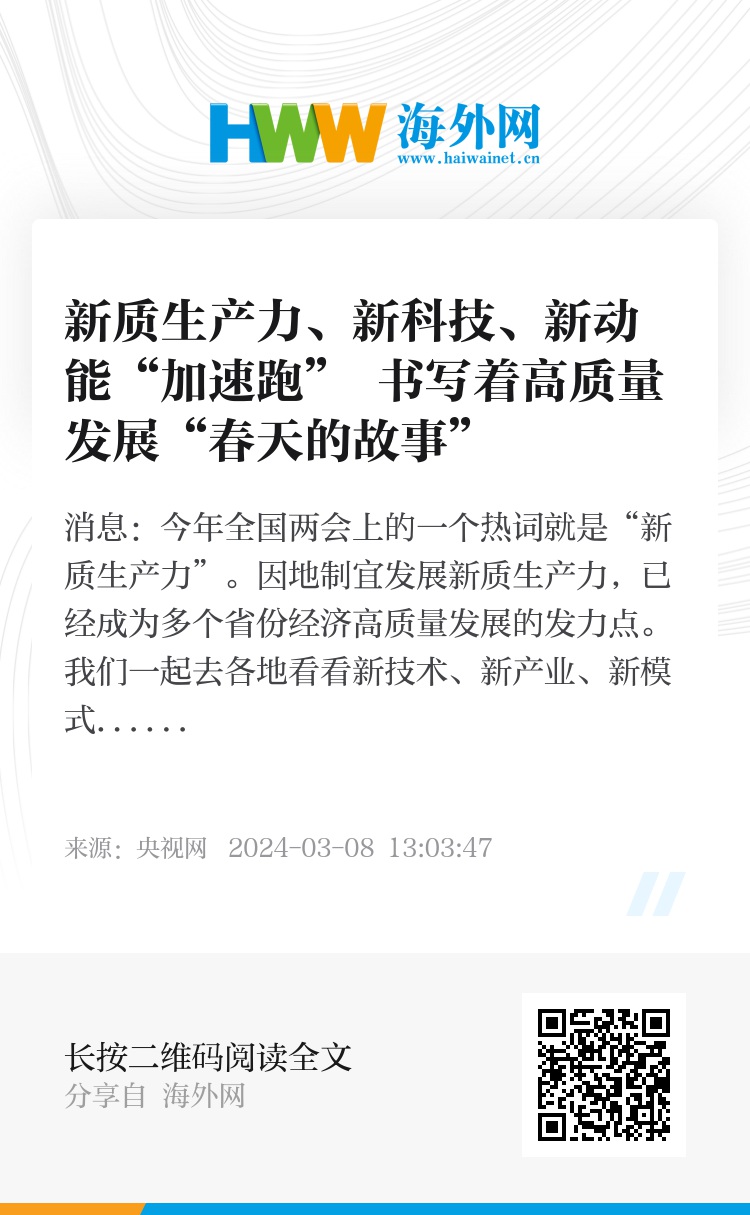 央视网消息:今年全国两会上的一个热词就是“新质生产力”。因地制宜发展新质生产力,已经成为多个省份经济高质量发展的发力点。我们一起去各地看看新技术、新产业、新模式,感受新质生产力的生机勃勃、欣欣向荣。