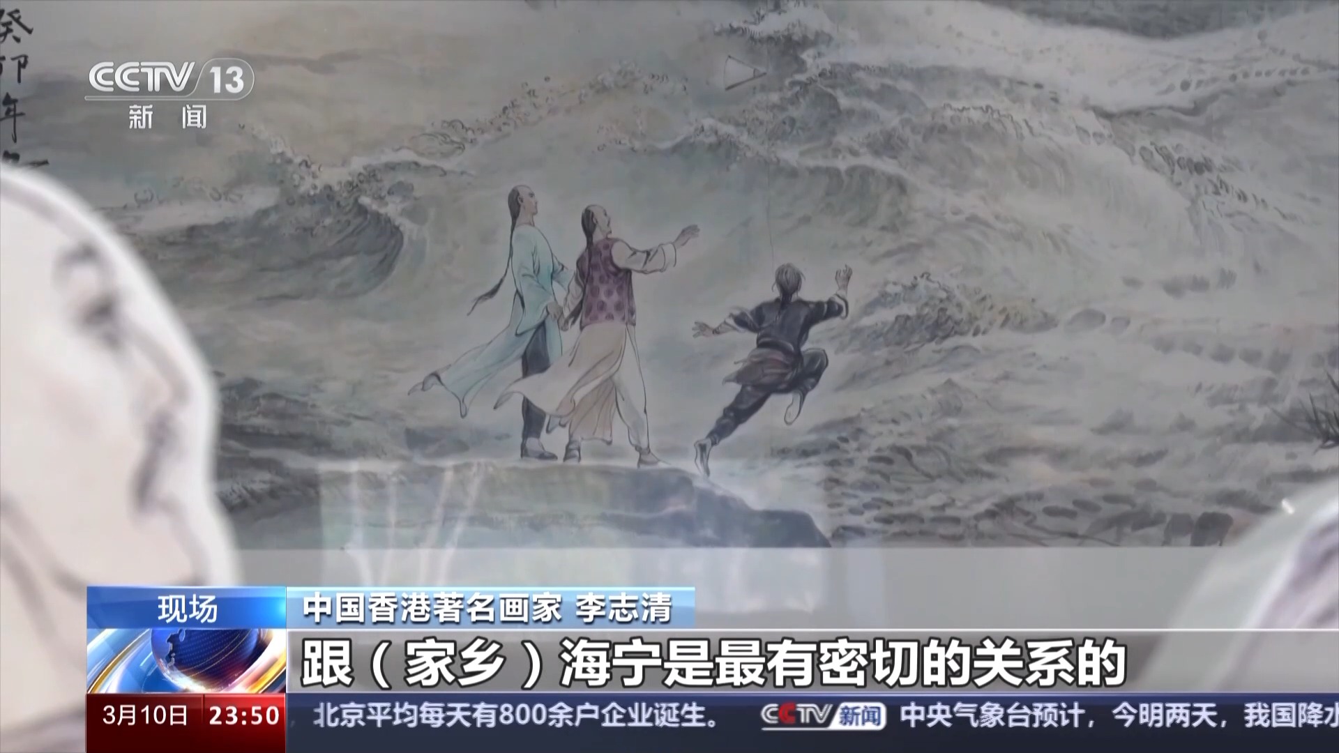 中国香港著名画家 李志清:我们创作这个最先想到的就是观潮的景象,因为这个情景跟家乡海宁是最有密切的关系的。