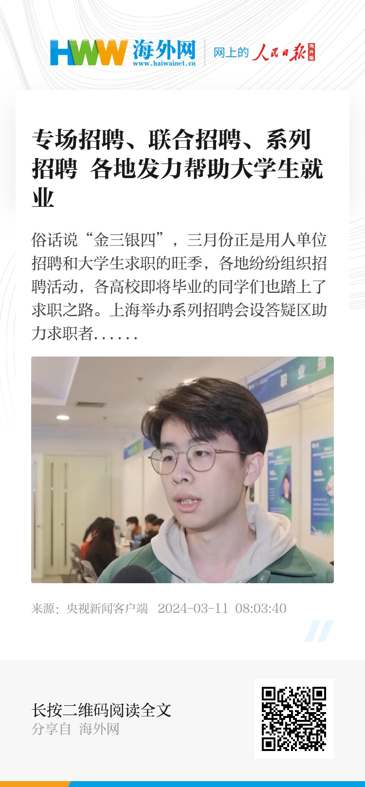 俗话说“金三银四”,三月份正是用人单位招聘和大学生求职的旺季,各地纷纷组织招聘活动,各高校即将毕业的同学们也踏上了求职之路。