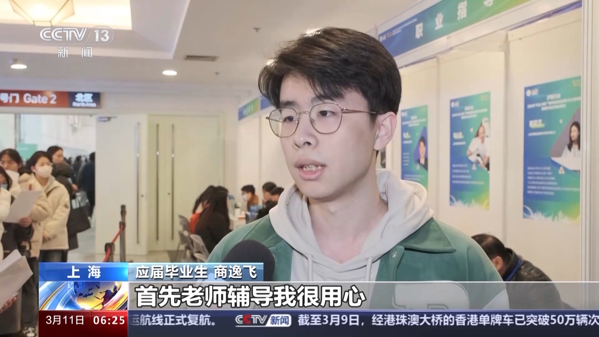 应届毕业生 商逸飞:今天职业指导,首先老师辅导我很用心,然后我也能够了解很多关于我这个专业的就业方向的问题,我觉得就业指导对于我们这些应届毕业生来说很重要。