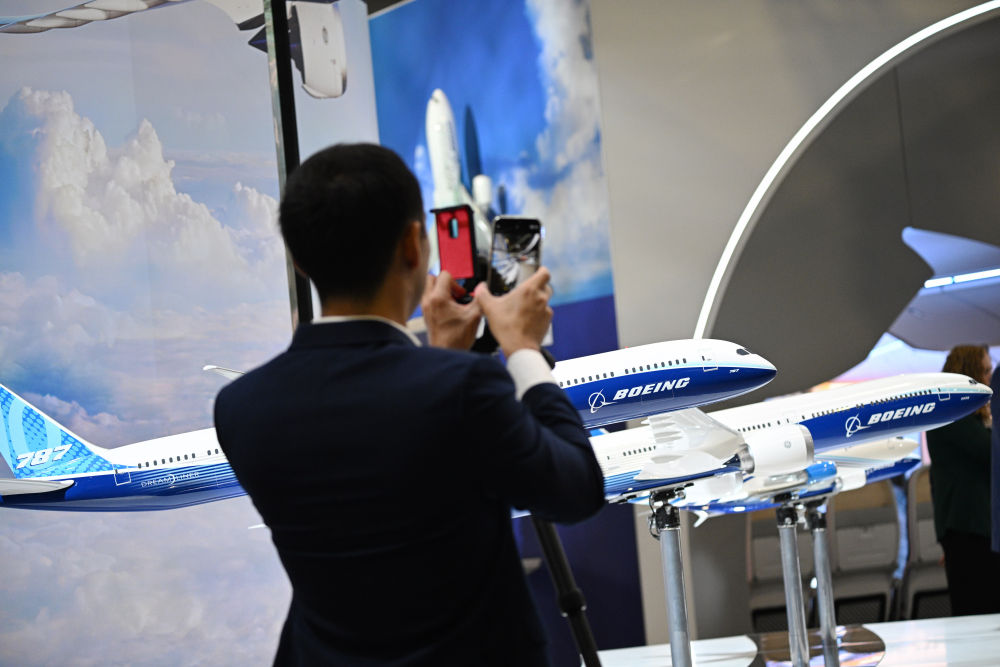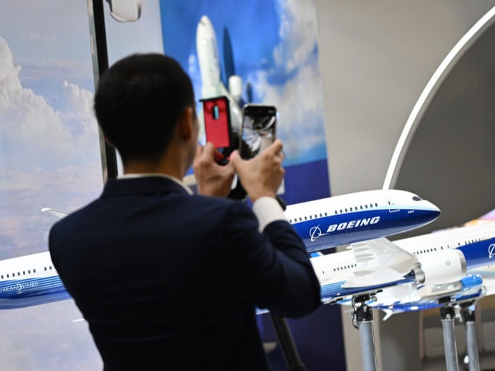 2月20日,在樟宜会展中心举行的新加坡航展上,观众在波音公司展台观展。新华社发(邓智炜 摄)