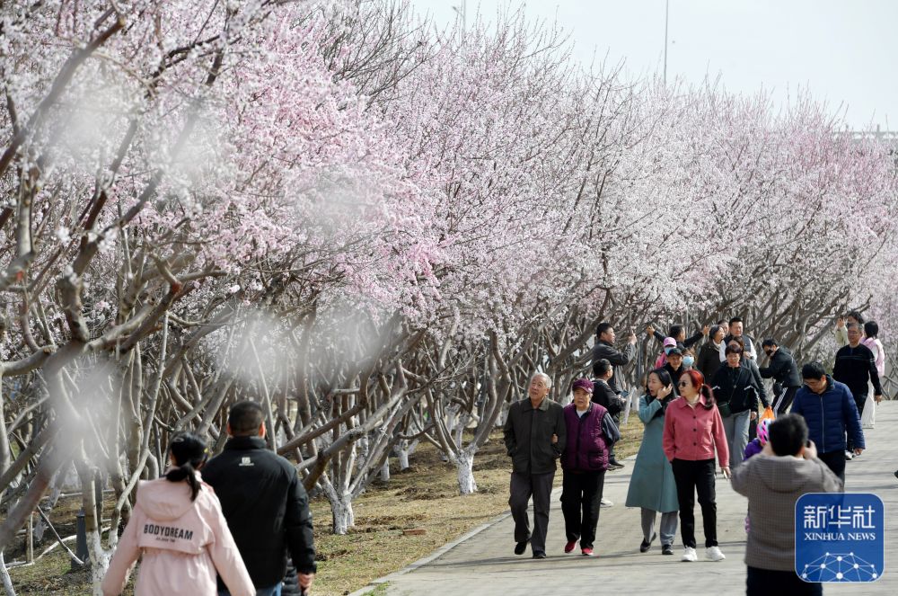 3月17日,人们在河北省石家庄市滹沱河生态区游玩。新华社发(张晓峰摄)