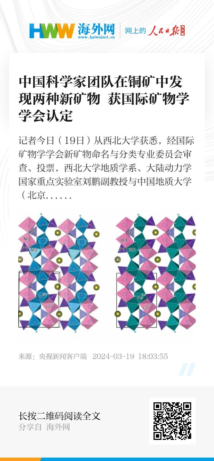 新矿物的发现属于0到1原创性成果,代表了矿物学基础研究的突破性进展。截至目前,全球共发现的矿物数量约6000个,我国科学家发现的矿物数量只有约180个。(总台记者 李志)