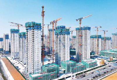 安徽合肥新站高新区加大城市更新力度,统筹推进“拆建安管”一体化。图为合肥新站高新区鹤翔园安置房项目建设现场,工人们正在紧张有序施工。张 敏摄(人民视觉)
