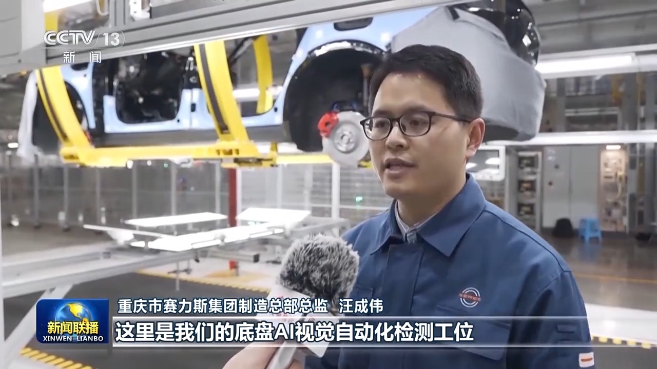 重庆市赛力斯集团制造总部总监 汪成伟:这里是我们的底盘AI视觉自动化检测工位,我们有1900多套自动化设备连接到了我们的智能化平台,关键工序的自动化检测已经达到了100%。