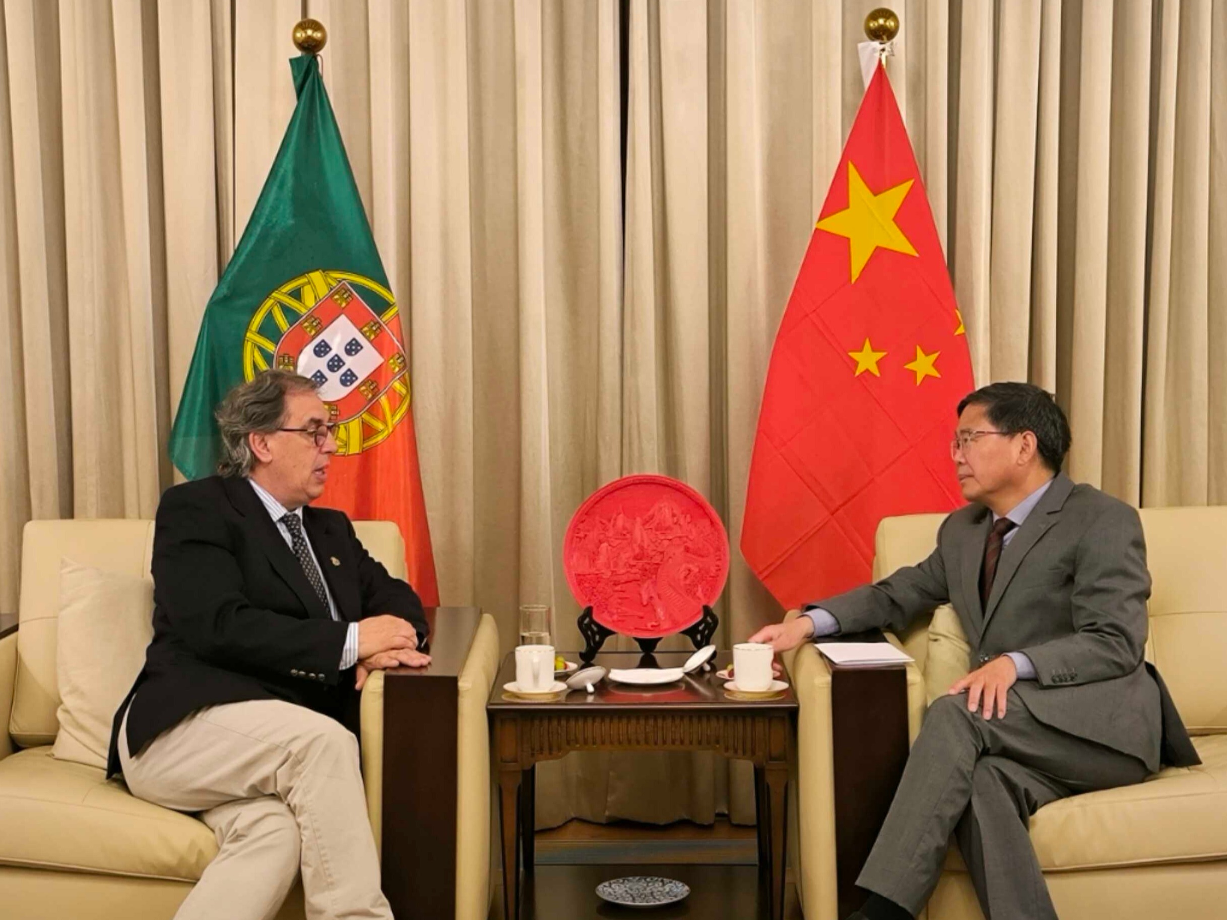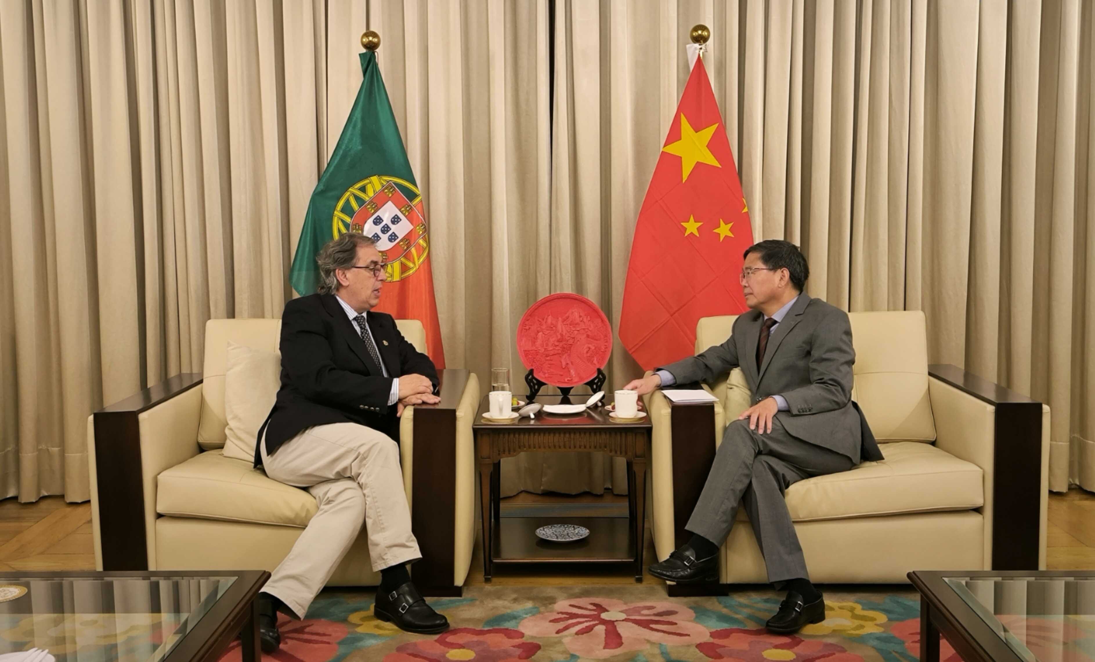 3月20日,驻葡萄牙大使赵本堂会见西班牙外交学会驻葡代表巴罗斯。
