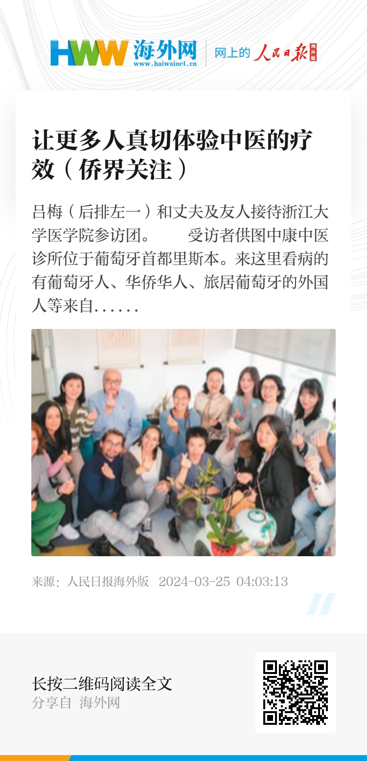 2017年,葡萄牙终于颁布了非传统疗法的具体法规,中医药行业的具体规范也在2018年正式公布。吕梅和丈夫的努力没有白费,葡萄牙从事中医药工作的人士也终于得到了明确的法律保障。