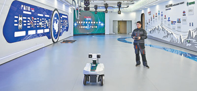 3月28日,工作人员在雄安科创中心中试基地展示巡检机器人。