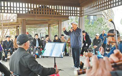 3月30日,雄安新区容西片区居民在演唱河北梆子。