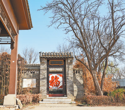 3月31日,雄安新区郊野公园里复建的南河照村“金玉璞家老宅”和老枣树。