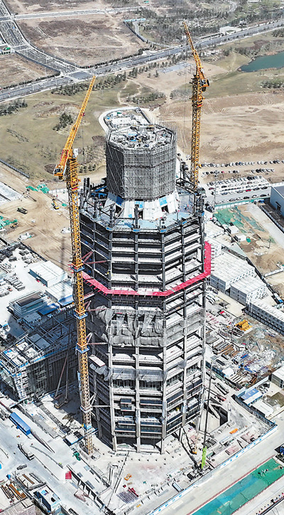 3月29日,雄安新区启动区标志性建筑之一,中国中化大厦建设现场。