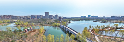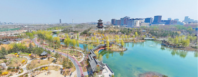3月31日,雄安新区容东片区金湖公园鸟瞰。