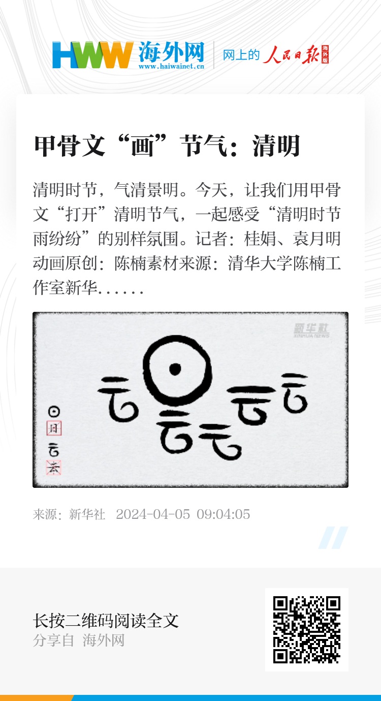 清明时节,气清景明。今天,让我们用甲骨文“打开”清明节气,一起感受“清明时节雨纷纷”的别样氛围。