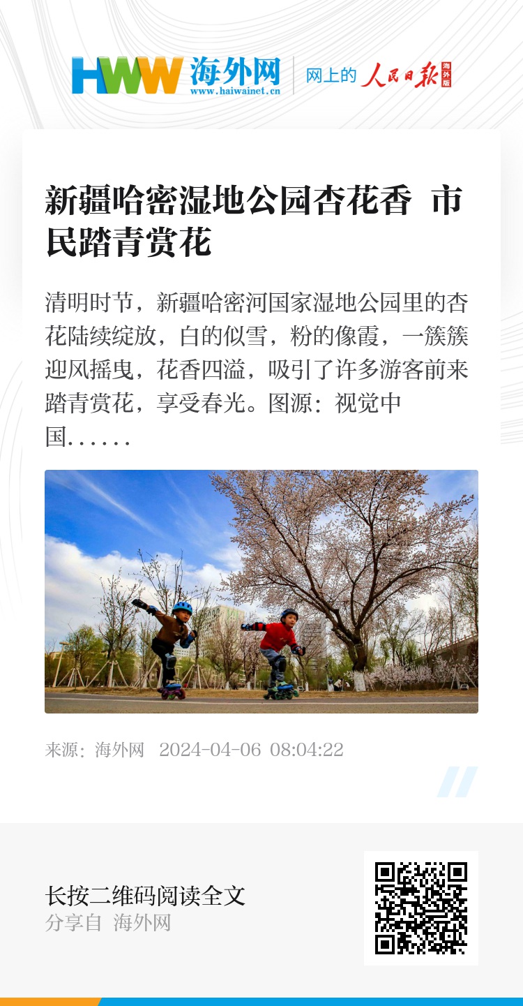 32733040,.新疆哈密湿地公园杏花香 市民踏青赏花,.2024-04-06 08:40:22,.204555,.陈菲扬、姚凯红