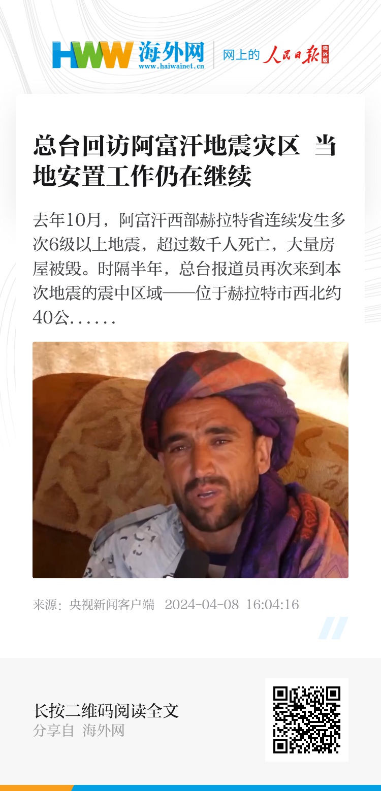 去年10月,阿富汗西部赫拉特省连续发生多次6级以上地震,超过数千人死亡,大量房屋被毁。时隔半年,总台报道员再次来到本次地震的震中区域——位于赫拉特市西北约40公里的津达詹区,发现目前大部分灾民已迁入政府重建的新居,仍有部分灾民住在临时避难所等待进一步安置。