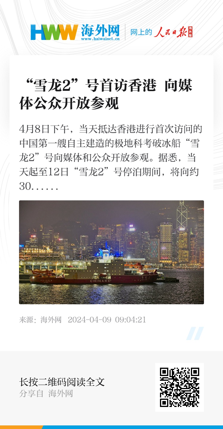 4月8日下午,当天抵达香港进行首次访问的中国第一艘自主建造的极地科考破冰船“雪龙2”号向媒体和公众开放参观。据悉,当天起至12日“雪龙2”号停泊期间,将向约3000名香港公众免费开放参观船上部分区域,并由船员和中国第40次南极考察队队员向参观者介绍船上部分设施设备和科考内容。中新社记者侯宇 摄 图源:视觉中国