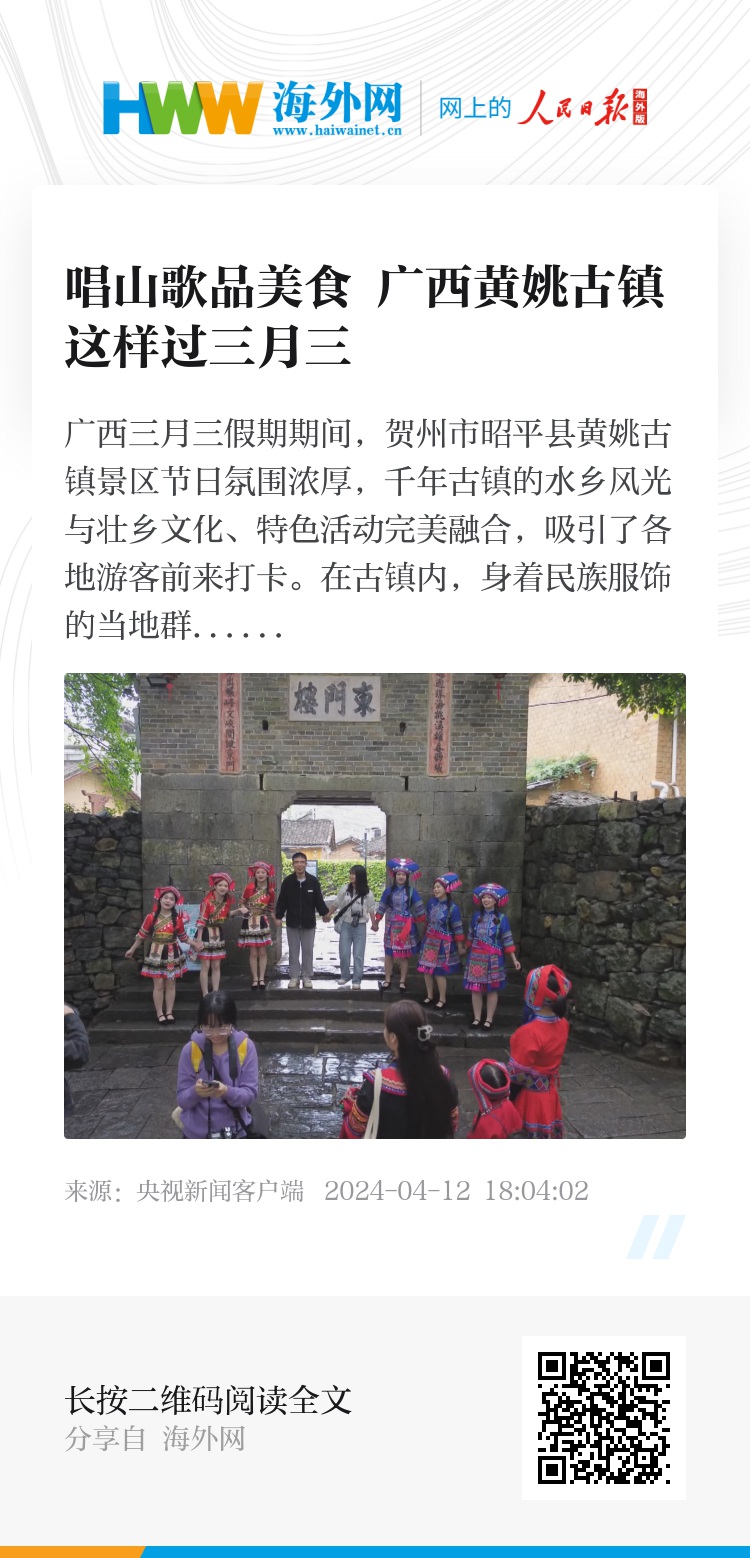 广西三月三假期期间,贺州市昭平县黄姚古镇景区节日氛围浓厚,千年古镇的水乡风光与壮乡文化、特色活动完美融合,吸引了各地游客前来打卡。