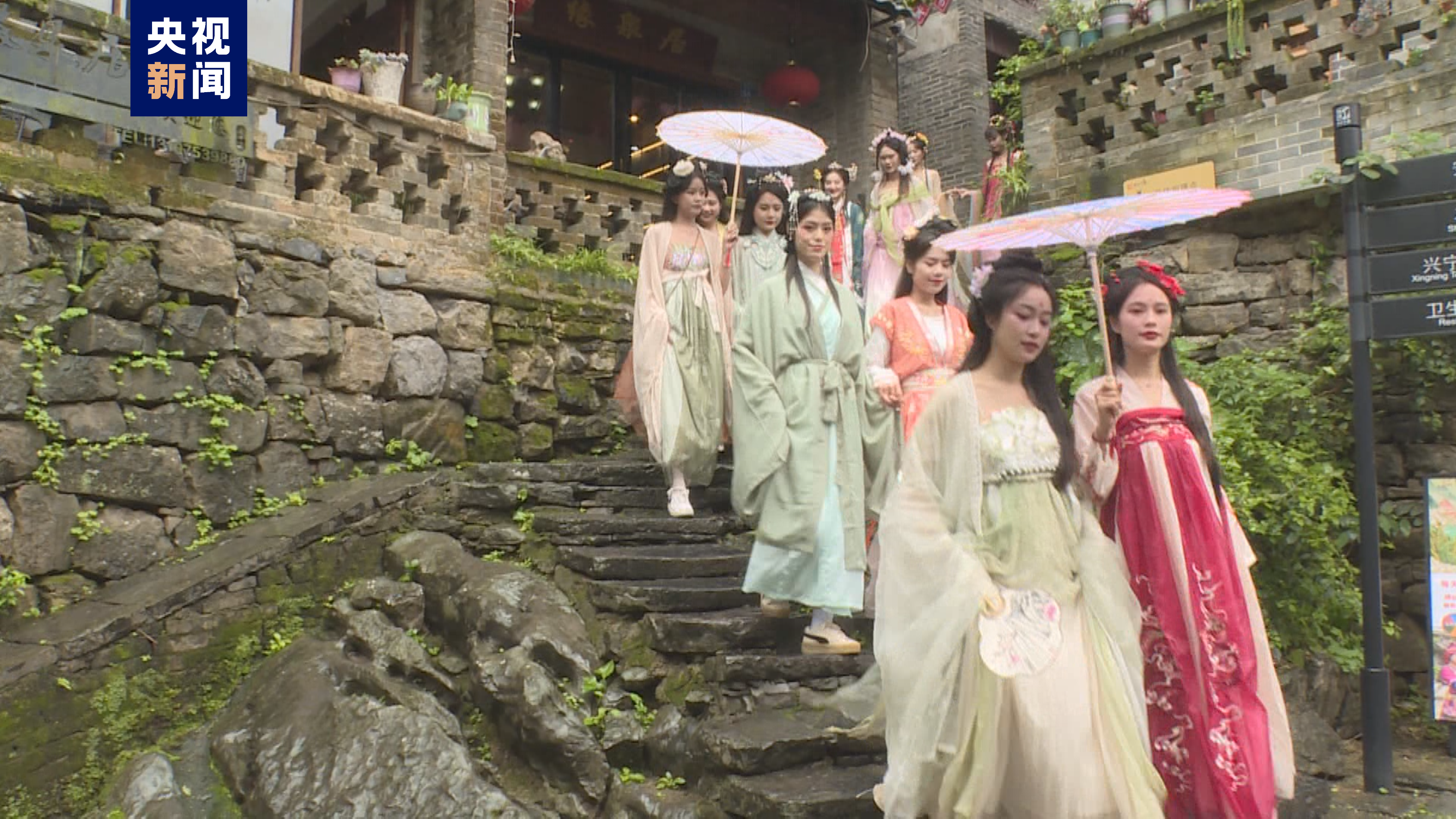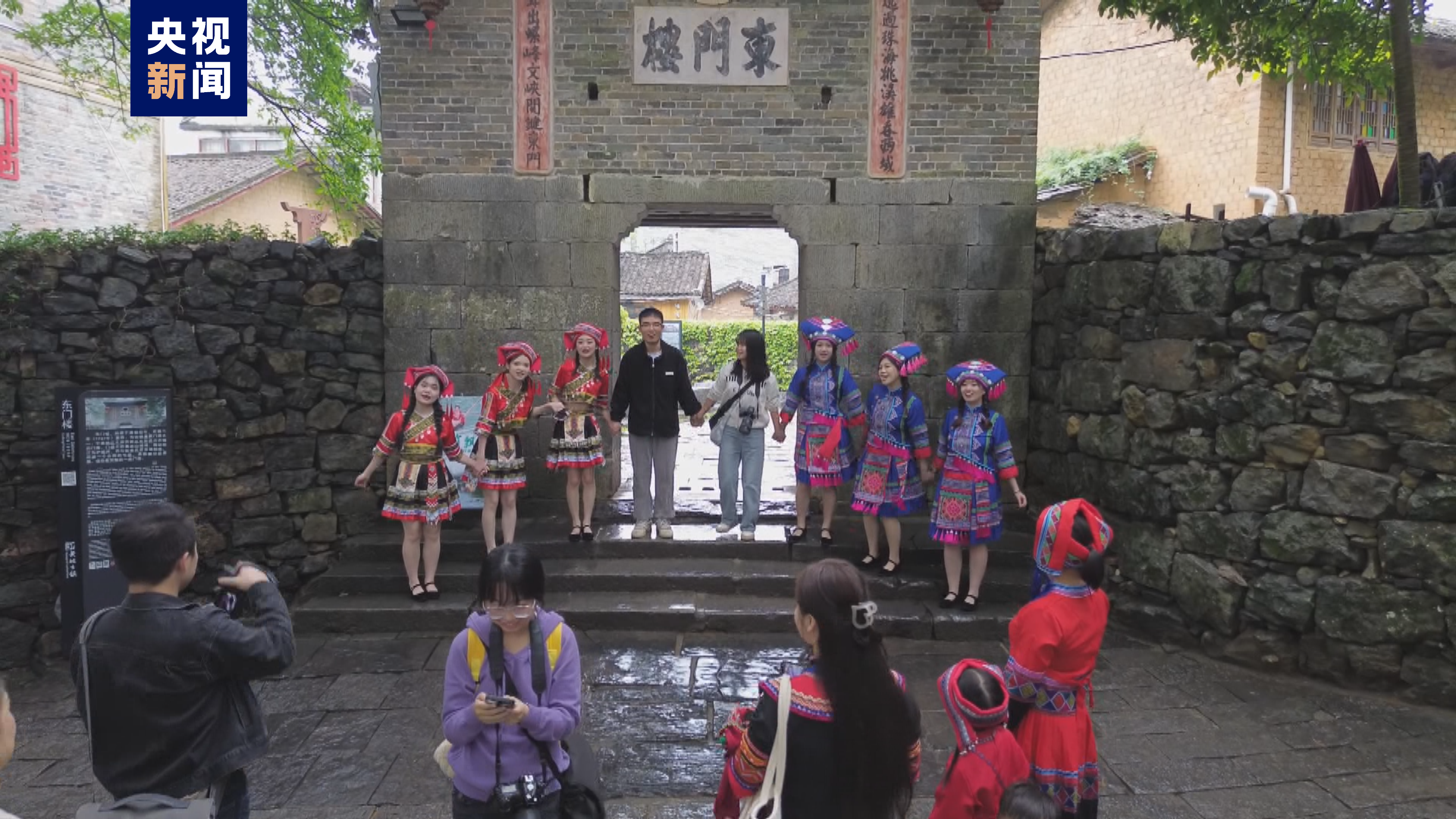 在古镇内,身着民族服饰的当地群众和景区工作人员用歌声和特色舞蹈欢迎来自全国各地的游客,传递着黄姚古镇的热情与好客。十二花神身着华服,行走在古镇街巷与游客们互动。