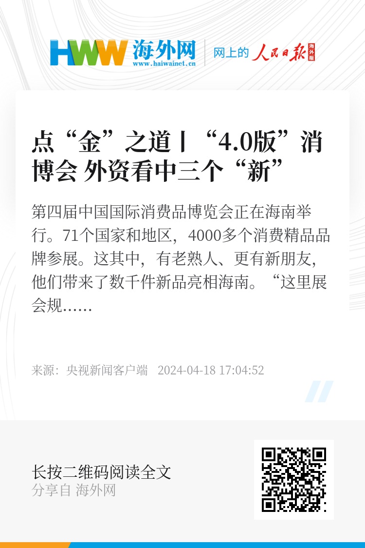 第四届中国国际消费品博览会正在海南举行。71个国家和地区,4000多个消费精品品牌参展。这其中,有老熟人、更有新朋友,他们带来了数千件新品亮相海南。