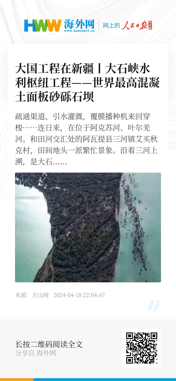 新疆大石峡水利枢纽工程是国务院确定的172项节水供水重大水利工程之一,是目前已建和在建的世界第一高混凝土面板坝和世界第一高砂砾石坝。