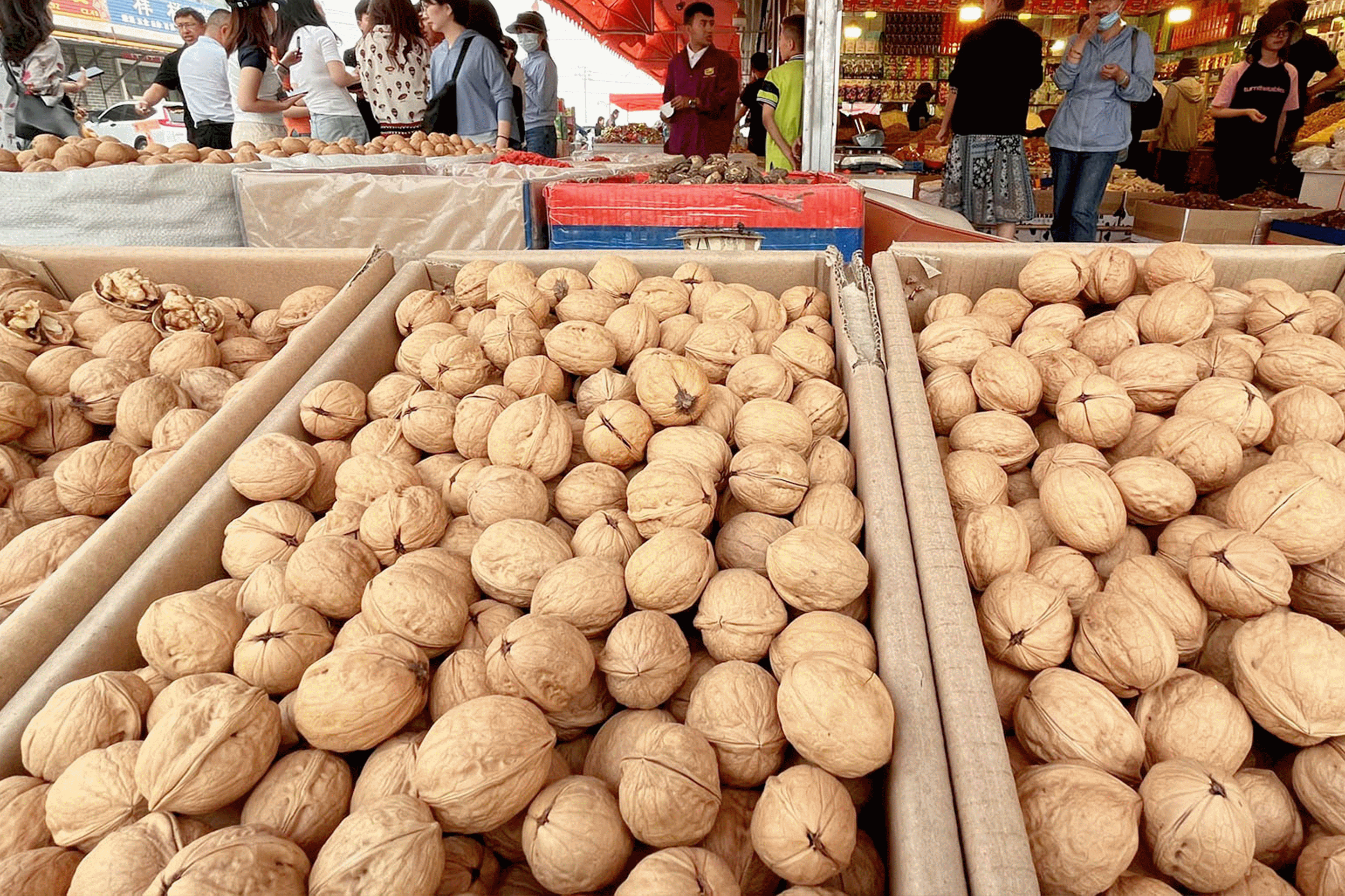 大石峡水利枢纽建设工地的下游——阿克苏地区,光照时间长,昼夜温差大,素有“中国红富士之乡”“中国核桃之乡”“中国枣园”“中国白杏之乡”的美誉。这里季节性缺水,盛夏时节冰川消融时,山洪和融雪叠加,会形成突发性洪水,但春秋时节水少。