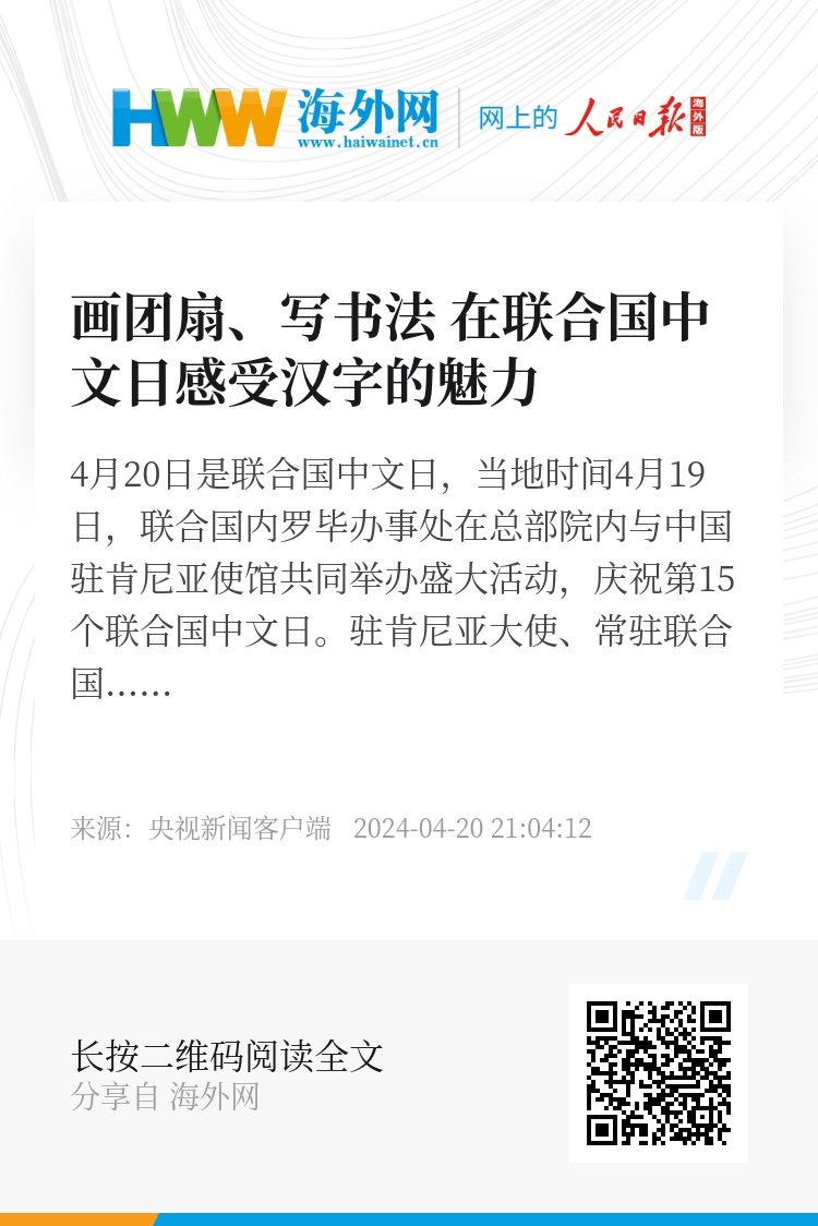 4月20日是联合国中文日,当地时间4月19日,联合国内罗毕办事处在总部院内与中国驻肯尼亚使馆共同举办盛大活动,庆祝第15个联合国中文日。