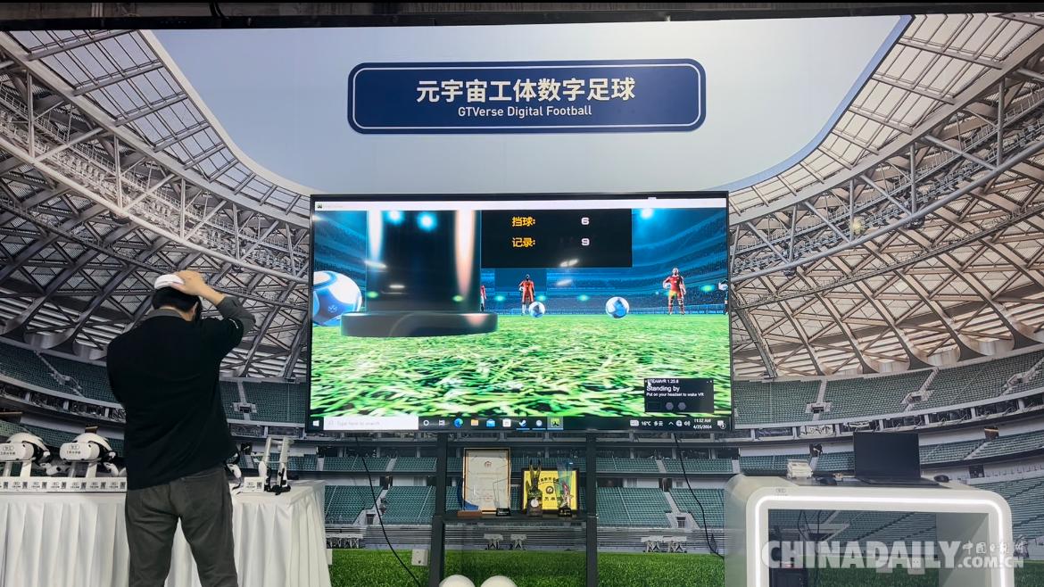 年会新闻中心展示的元宇宙工体数字足球体验项目。