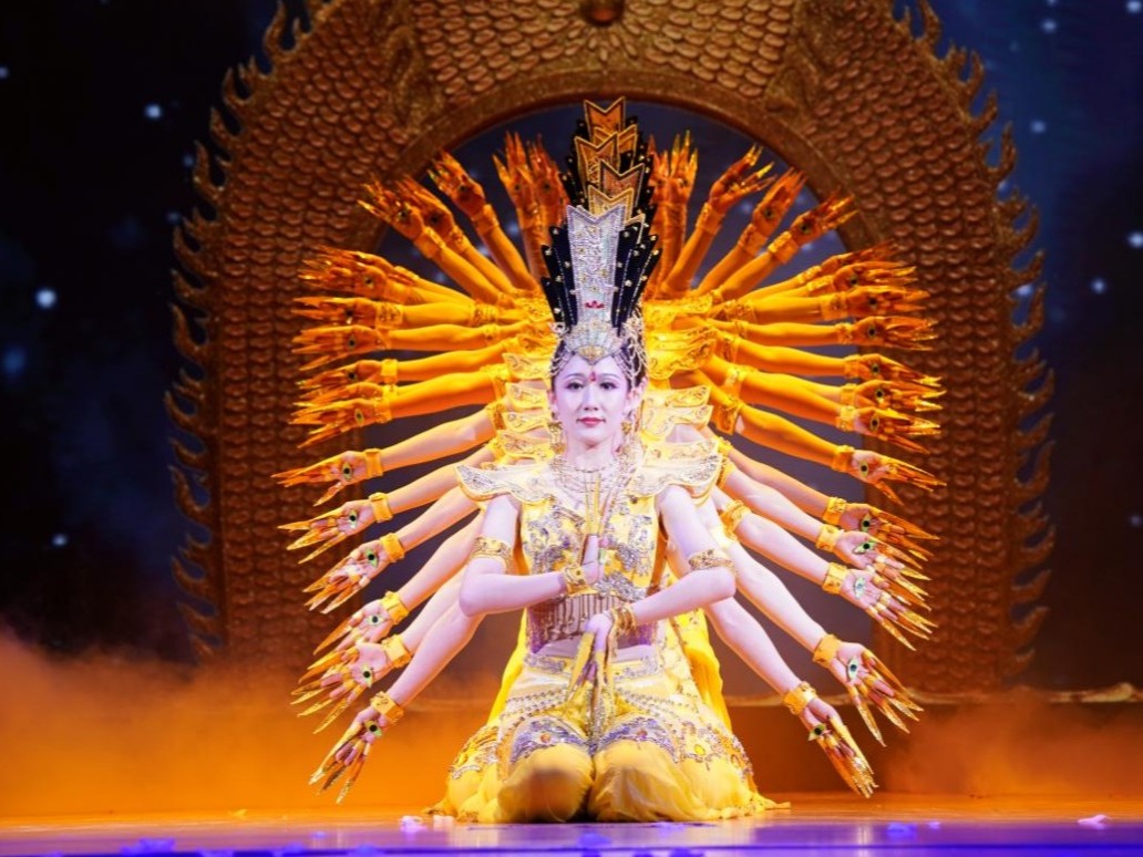 《千手千眼》是以中国残疾人艺术团音乐舞蹈诗《我的梦》为蓝本、融合世界文化遗产敦煌莫高窟文化元素创编而成。内容根据敦煌莫高窟现存《千手千眼观音》壁画创作,由听障舞者和视障乐手、歌手,通过音乐、舞蹈、器乐和多媒体等艺术表演形式,讲述“妙善救父”化身“千手千眼观音”的民间故事,具有鲜明的敦煌特色和深厚的人文情怀。