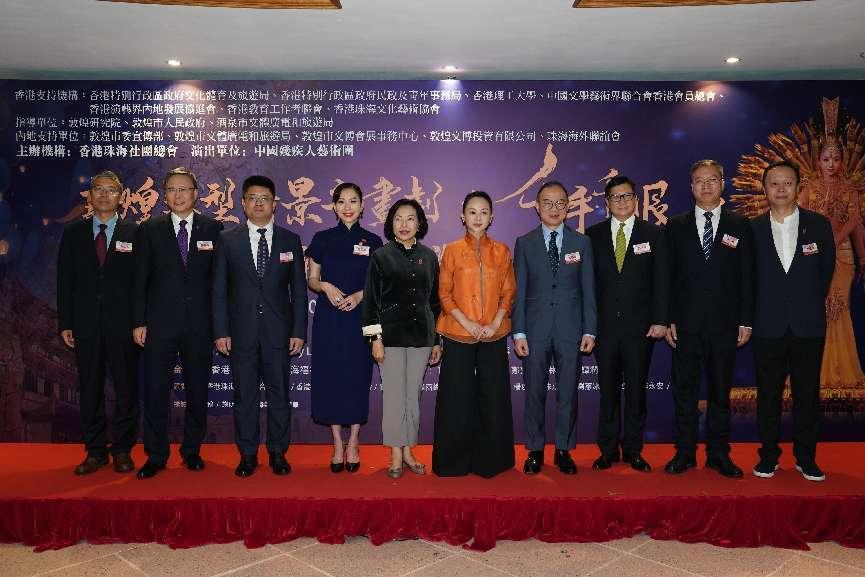 当晚出席的主礼嘉宾包括:香港特区政府政制及内地事务局局长曾国卫,香港特区政府保安局局长邓炳强,香港特区政府民政及青年事务局局长麦美娟,中央人民政府驻香港特别行政区联络办公室港岛工作部副部长王卉,酒泉市委常委、敦煌市委书记石琳,香港理工大学校长滕锦光,敦煌市委副书记朱玉明,敦煌市人民政府特别顾问谢建华,以及港区全国人大代表、香港珠海社团总会会长邝美云等。(杨海旗)