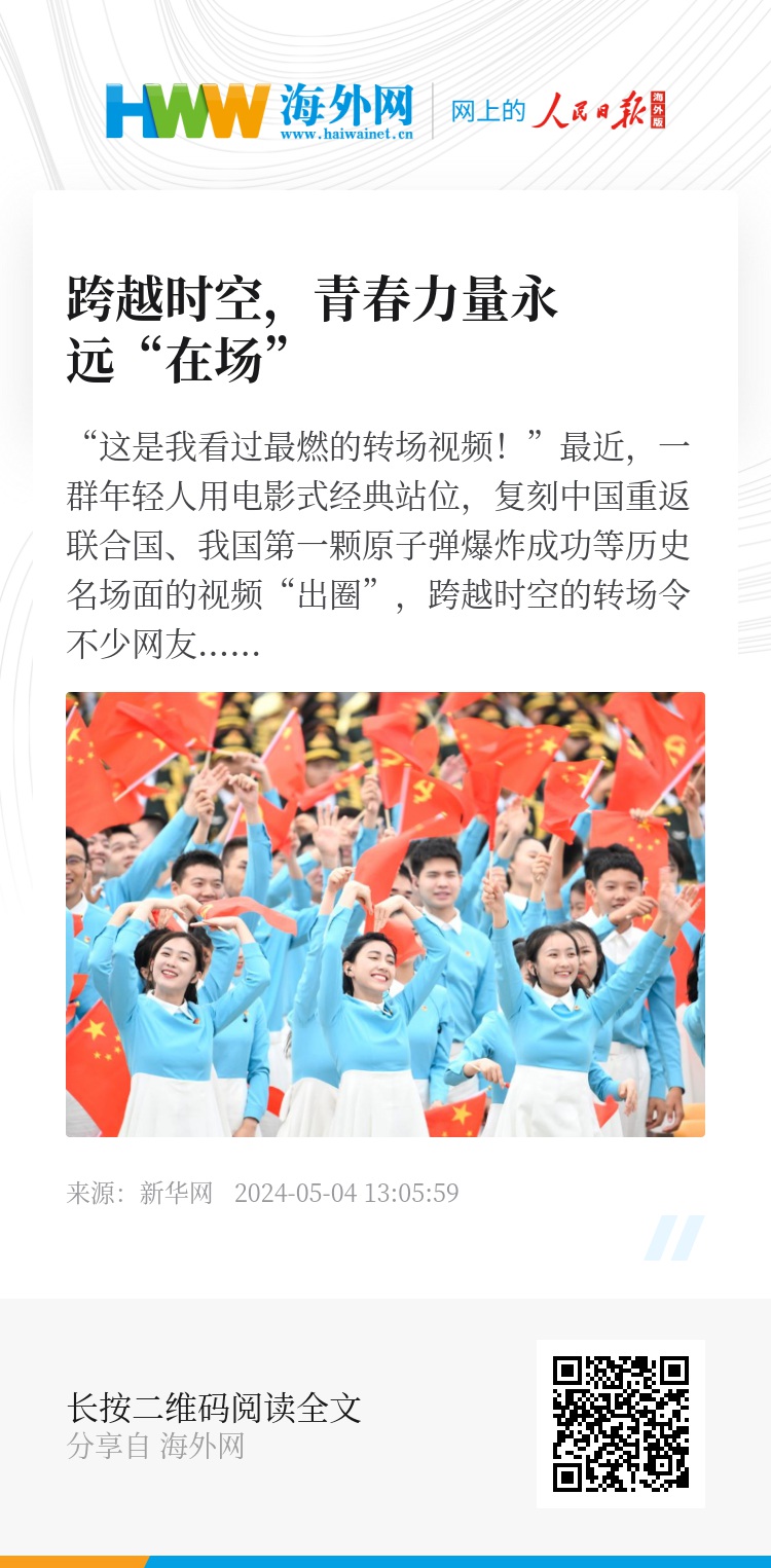 我们赞美青春,从来不是为了歌颂年轻的容颜,而是为青春所传递的爱国、担当、勇敢等鼓掌。放眼未来,前路永无止境,惟以青春之我、奋斗之我,才能一往无前。(新华网记者王志艳 樊思雨)