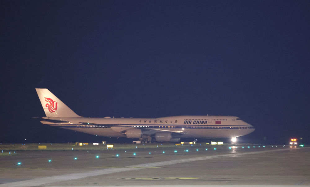 习近平主席夫人彭丽媛,中共中央政治局常委、中央办公厅主任蔡奇,中共中央政治局委员、外交部部长王毅等陪同人员同机抵达。