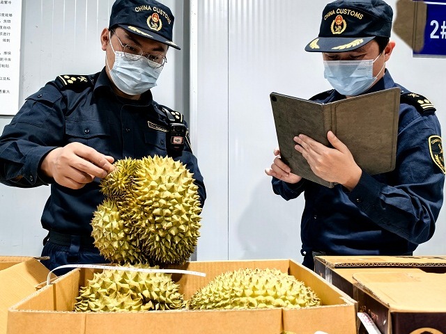 在进口水果中,榴莲深受中国消费者喜爱。据中国海关统计,2023年中国进口新鲜榴莲超142万吨,进口量同比增长72.87%。