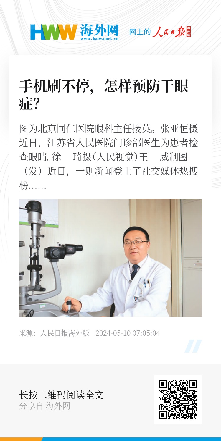 “以前老年人常被认为是患干眼症的主要群体,现在我们在门诊中发现,干眼症有年轻化的趋势。”接英介绍,近些年就诊的干眼症患者里有不少年轻面孔,其中甚至包括部分儿童青少年。