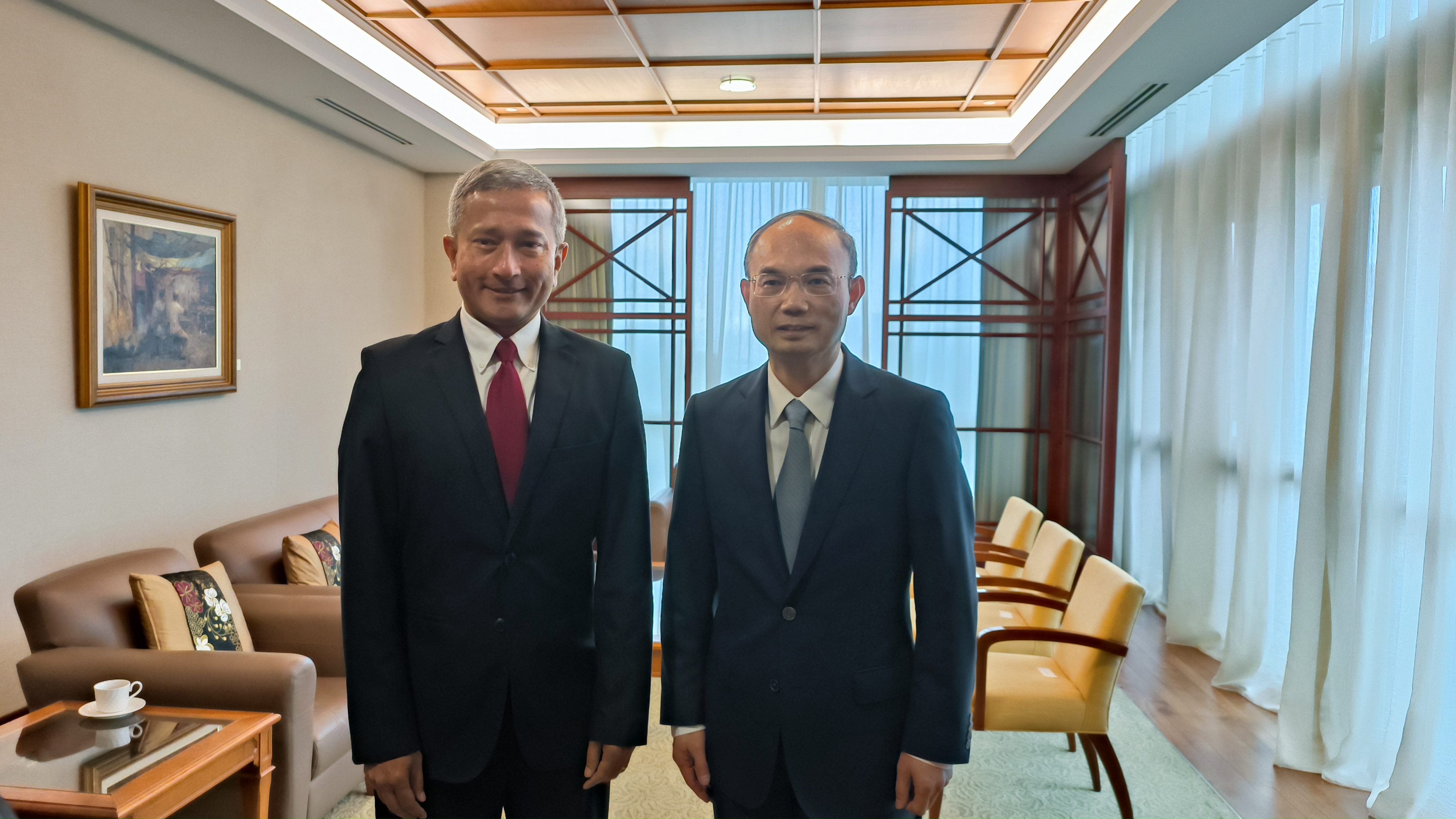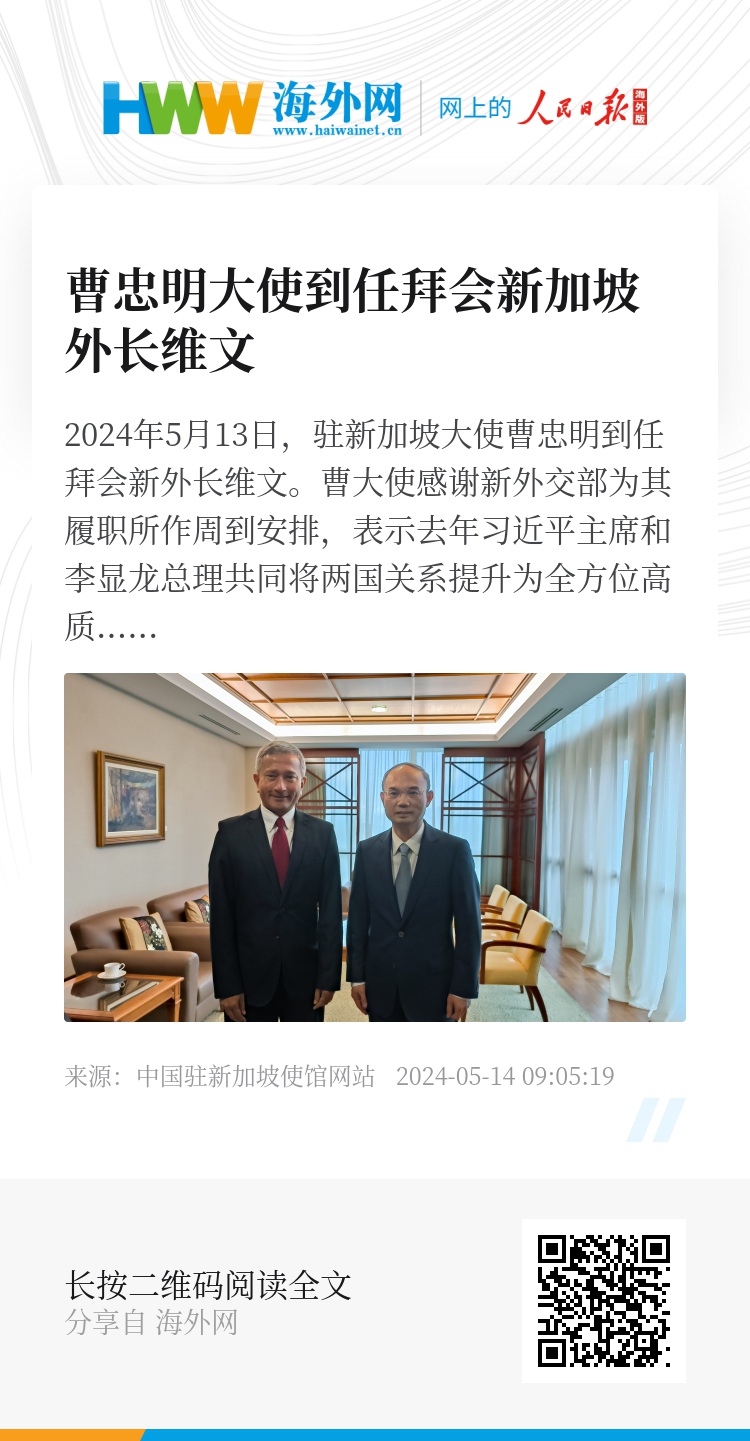 2024年5月13日,驻新加坡大使曹忠明到任拜会新外长维文。