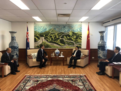 2024年5月13日,驻布里斯班总领事阮宗泽会见吉林省商务厅副厅长王立群率领来昆士兰州访问的经贸代表团。吉林省商务厅总经济师徐德辰等参加会见。
